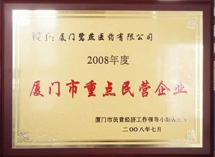 近日,經市政府第35次常務會議研究確認, “2008年度廈門市重點民營企業(yè)”名單已正式公布,廈門鷺燕醫(yī)藥有限公司繼2006年之后再次獲此殊榮。 據(jù)相關負責人介紹,該評選活動每兩年舉行一次,主要針對在廈門注冊,在所從事行業(yè)處于領先地位,獲得相關行業(yè)部門、社會團體或同類型企業(yè)普遍認可的民營企業(yè)。 本次共評選出60家重點民營企業(yè),鷺燕醫(yī)藥2007年度銷售收入近10億元,比上年增長36.9%。作為唯一的一家醫(yī)藥流通企業(yè)入選,彰顯了企業(yè)的行業(yè)地位。此次獲選肯定了公司的經營業(yè)績,同時也激勵著公司發(fā)揮優(yōu)勢、克服困難,繼續(xù)保持企業(yè)健康、可持續(xù)發(fā)展能力,力爭在新的一年里再創(chuàng)佳績,實現(xiàn)集團股份制改造后經營質量有質的飛躍,為全社會的健康事業(yè)做出新的更大的貢獻。