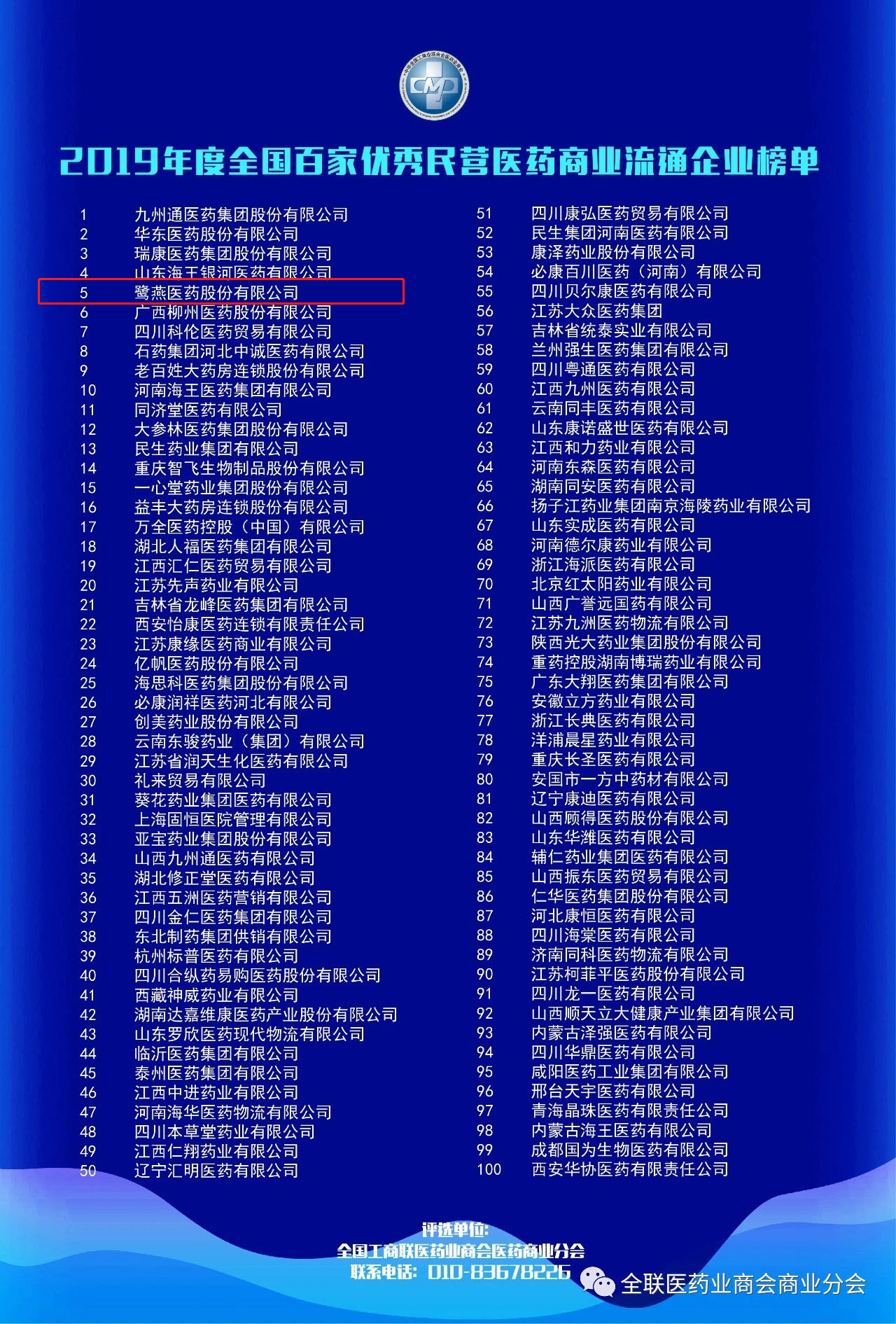 2019年度全國百家優(yōu)秀民營醫(yī)藥商業(yè)流通企業(yè)榜單發(fā)布