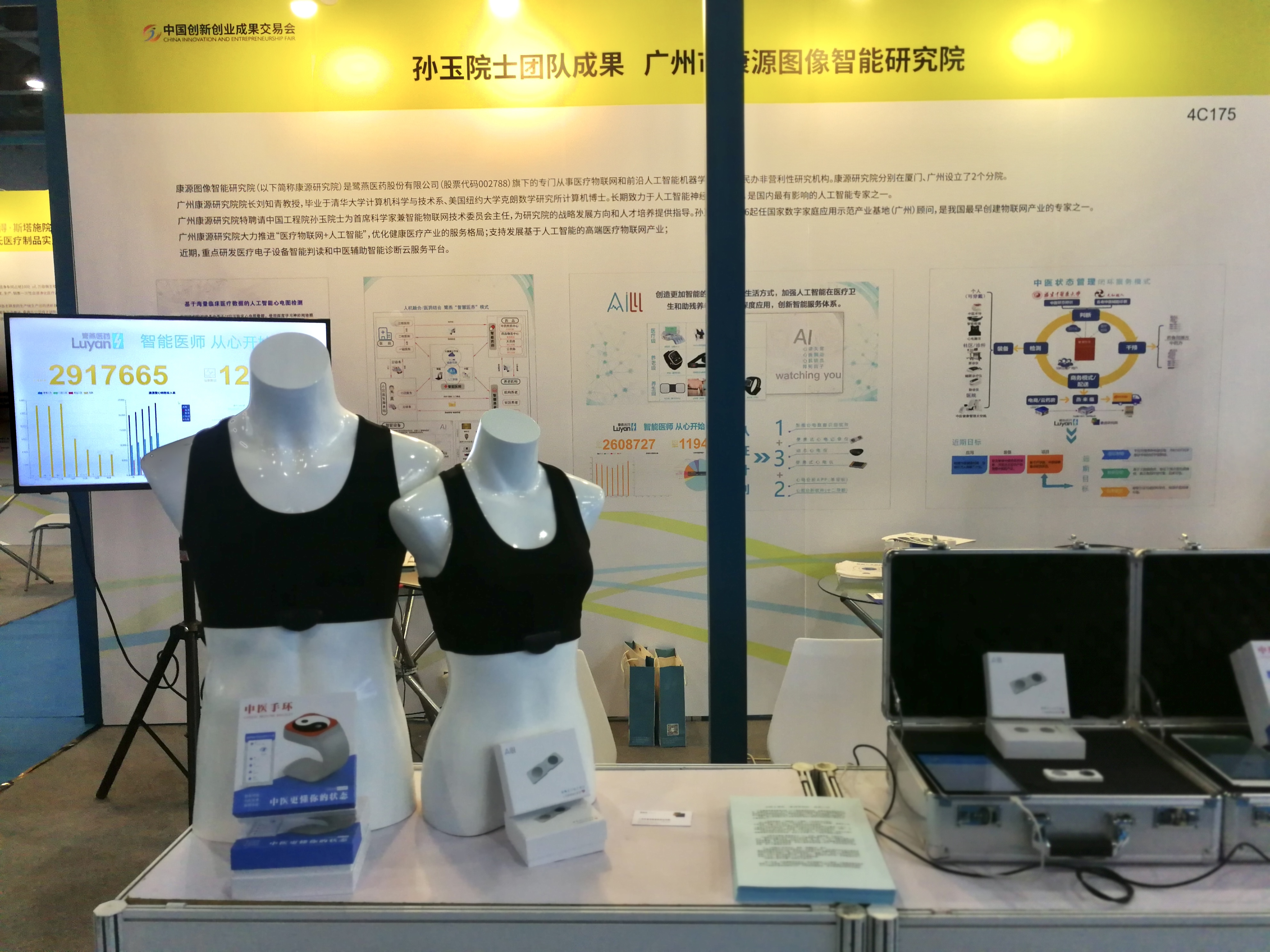 在本屆成果交易會上,康源研究院團隊展出了自主研發(fā)的人工智能便攜式心電系列產(chǎn)品,包括便攜式心電記錄儀、動態(tài)心電儀和中醫(yī)手環(huán)等,并現(xiàn)場演示了心電檢測、心電判讀、中醫(yī)狀態(tài)管理閉環(huán)式服務(wù)模式。