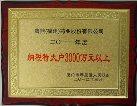 近日,廈門(mén)市湖里區(qū)隆重召開(kāi)2011年度納稅先進(jìn)企業(yè)表彰大會(huì),鷺燕(福建)藥業(yè)股份有限公司以超3000萬(wàn)的突出納稅貢獻(xiàn)榮獲“2011年度廈門(mén)湖里區(qū)納稅特大戶(hù)”稱(chēng)號(hào)。