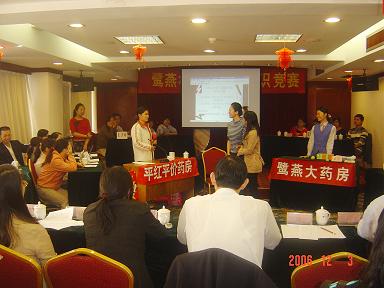 廈門鷺燕大藥房有限公司于2006年12月3日在廈門廬山大酒樓隆重舉行鷺燕杯首屆工會(huì)知識(shí)競(jìng)賽,此次工會(huì)知識(shí)競(jìng)賽由6個(gè)工會(huì)小組各自選派4名選手參加,比賽環(huán)節(jié)包括團(tuán)隊(duì)介紹、啦啦隊(duì)互動(dòng)、演講比賽、必答題、搶答題、猜詞秀、才藝表演等,形式多樣、內(nèi)容豐富。比賽現(xiàn)場(chǎng)還邀請(qǐng)了一些供應(yīng)商的代表作為嘉賓評(píng)委,為比賽進(jìn)行現(xiàn)場(chǎng)點(diǎn)評(píng)及頒獎(jiǎng)。